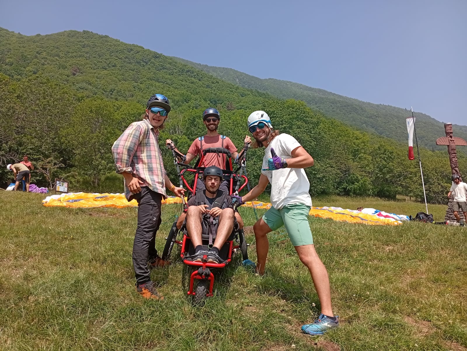 L’idée est simple : partager la passion du parapente avec des personnes en situation de handicap, en organisant chaque année un stage spécialement adapté.
